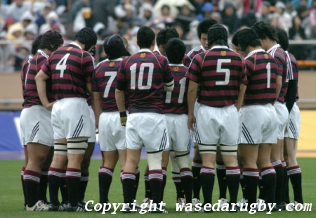 赤黒と紫紺によるバトル2005は、雨の中での戦い。最後の舞台となる4年生の脳裏には、あの日の記憶が甦っていた。2002年12月1日、『山下組』、『雨の早明戦』、24-0、76年ぶりの完封。「あのときも雨で、みんなタックルしまくって0点。今日はプレーしながらそのときのことを思い出しました…」(副将・青木佑輔)。タックルに次ぐタックル、冷たい雨を吹き飛ばす熱気、インゴールを背負っての高度な集中。あれから3年、山下大悟の背中を追いかけ、必死にしがみついてきた佐々木隆道、青木佑輔がチームの中心となった今シーズン、奇しくもあのときの光景が再現された。佐々木隆道は主将就任時、こう話したことがある。「僕の中でワセダのキャプテンと言ったら、大悟さんなんです。あの人は僕の中でものすごく大きな存在。ああいうキャプテンになりたいんです」…。4年生の姿を見て、下級生が成長するのがワセダの伝統。 あのときの1年生、『佐々木組』が記したスコア・ノートライでの40-3はある意味必然だったかもしれない。
