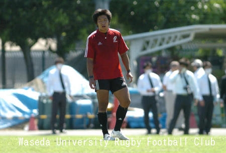 「今日はDの試合というよりも、ワセダと慶應の試合だったので。上のチームも下のチームも関係なく、負けてはいけない、とにかく勝つことを意識してやりました。先制されても自分達のミスからなので、焦ることもなく、もう一回そこから切り替えて一からのスタートという感じでした。合宿から帰ってきてやっていたのは、とにかくタックルです。ディフェンスを中心にやってました。合宿で勝てなくて、帰ってきて一発目に慶應ということで、気持ち入ってて。技術が夏と比べてすごく上がったとかいうわけではなくて、絶対に勝たなきゃいけない、しかも一発目が慶應という、そういうメンタルの部分で本気でいったというのが今日の試合に出たんだと思います。課題は…タックルですね。100%止めて当たり前なんで。みんな、Dで勝つことが目標ではなく、上のチームで国立に出るというのを目指してるので。他の大学の下のチームと試合をするんじゃなくて、もっと上を目指してこれからもやっていきたいです」