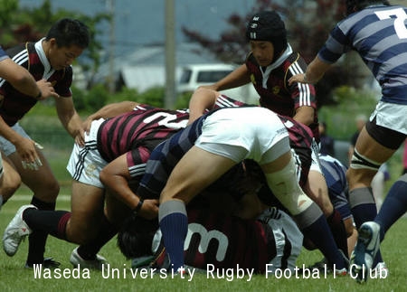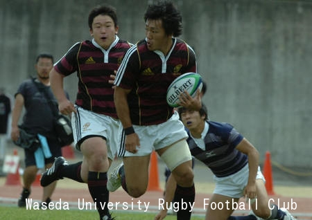 相変わらずの入りの悪さで、いきなりインターセプトを喰らうドタバタも、ちょっとばかり喝を入れ、戦闘モードに切り替えると、前半は今シーズン最高(最速)のトライラッシュ。ボールを保持し続ける限りは、インゴールまでのフリーパス。仕掛けて、振って、前に出る。それを基本に忠実に援護する。辻監督も「サポートの意識はよかった。ヘッドスピードの成果かな(笑)」と笑顔を見せた『高速』アタックは、見る者のハートも揺さぶった。40分間で実に3度のノーホイッスルトライ。そこに伝統の力を見た。パス&サポート、ヘッドスピードは、ワセダの命!