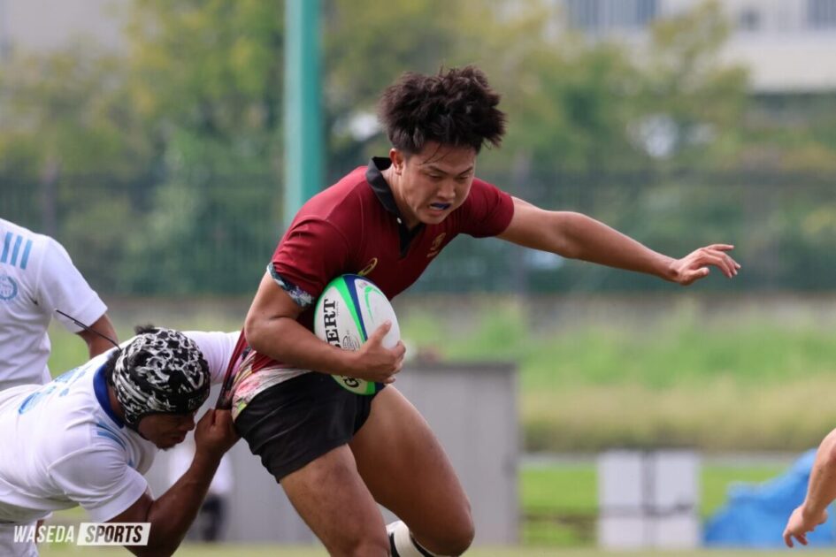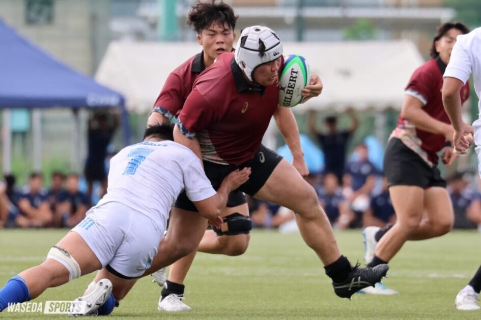 後半が始まると早大Bが流れに乗る。山下のロングゲインからSH川端がゴールラインにグラウンディング。さらにCTB福島がパワーでディフェンスラインを突破すると、オフロードパスを受け取った山下がトライラインを叩き割った。28分には平山が相手ディフェンダーを引きずる豪快なトライを見せ、49-24で勝利を収めた。