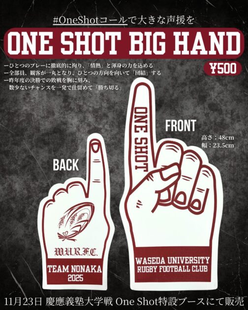 当日は早稲田ラグビーグッズを身に付けて、ぜひ会場で、チーム野中への温かいご声援、よろしくお願いいたします!