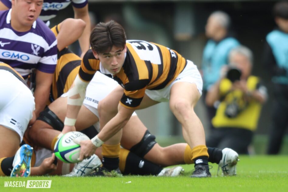 注目したいマッチアップを紹介する。まずはSH対決。早大のファーストチョイスは糸瀬真周(スポ4=福岡・修猷館)。高速なパスで相手を翻弄する超攻撃型SHだ。SO服部亮太(スポ2=佐賀工)との連携は試合を重ねるごとに進化しており、大学ラグビー随一のハーフ団となりつつある。
