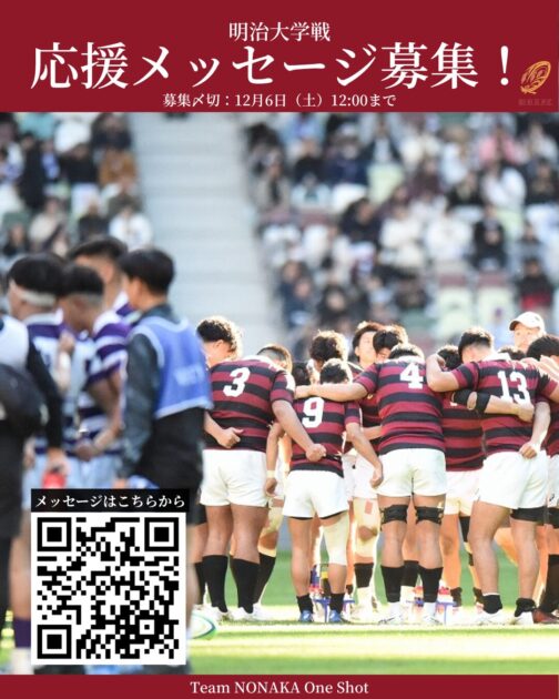 明治大学戦に向けて、皆さまより早稲田ラグビーへの応援メッセージを募集させていただきます!