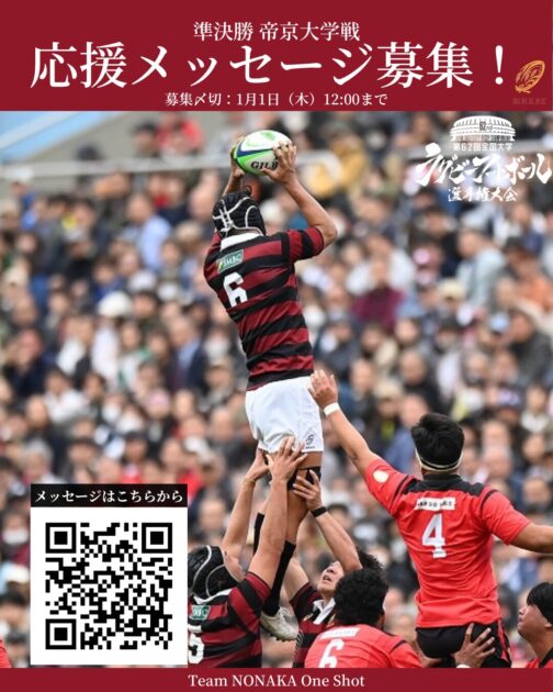 帝京大学戦に向けて、皆さまからの応援メッセージが選手への大きな励みとなります。