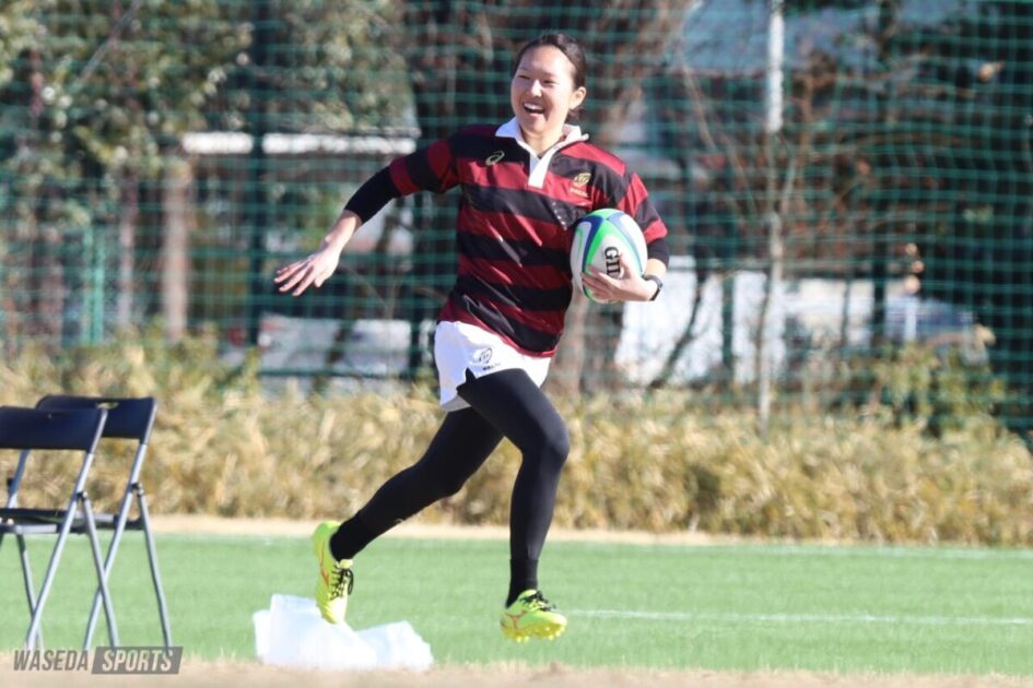 勝敗以上に楽しむことが前面に出た内容となり、選手同士の声掛けや自由な発想のプレーが随所に見られた。勝矢紘史(スポ4=長崎北陽台)がトライを決めると、コンバージョンキックにも挑戦。これを見事に成功させ、グラウンドを大いに沸かせた。さらに、松中羽菜(スポ4=東京・大妻多摩)を筆頭に、これまでチームを支えてきたマネージャーやトレーナーがディフェンスをかわし、ボールを抱え駆け抜ける場面もあった。試合終盤には4年生全員でモールからトライを決めるなど、4年生一人一人が上井草グラウンドでの最後のひと時を楽しんだ。