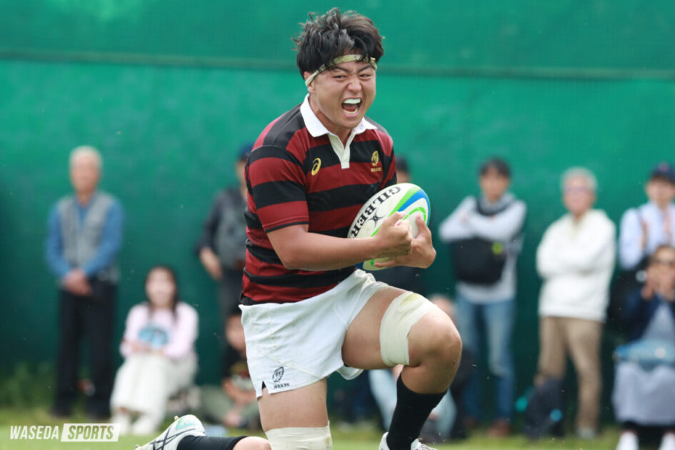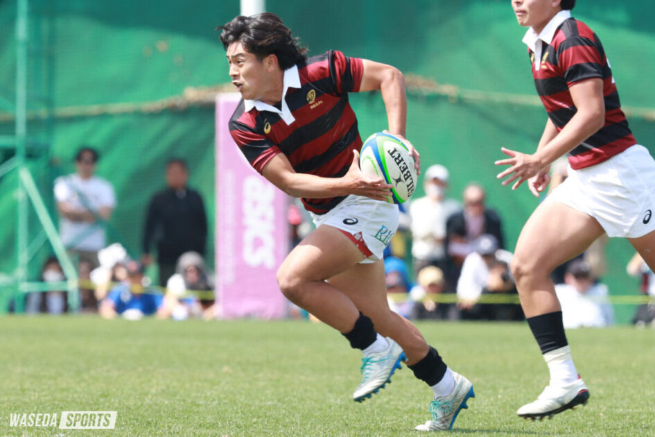 そして今試合では野島も存在感を光らせた。前半の早い時間から試合に出場し、声出しからチームを励ますと、高いワークレートから疲労が溜まった後半でもすべてのブレイクダウンで顔を出す運動量をみせた。そんな野島が26分、キックオフからそのままゴールラインを駆け抜け45-12と点差を広げた。その後もリードを保った早大が45-12で試合を折り返した。